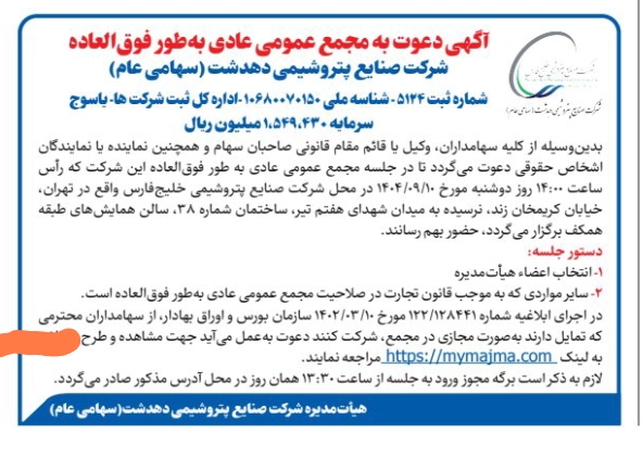 - آگهی دعوت به مجمع عمومی عادی به طور فوق العاده